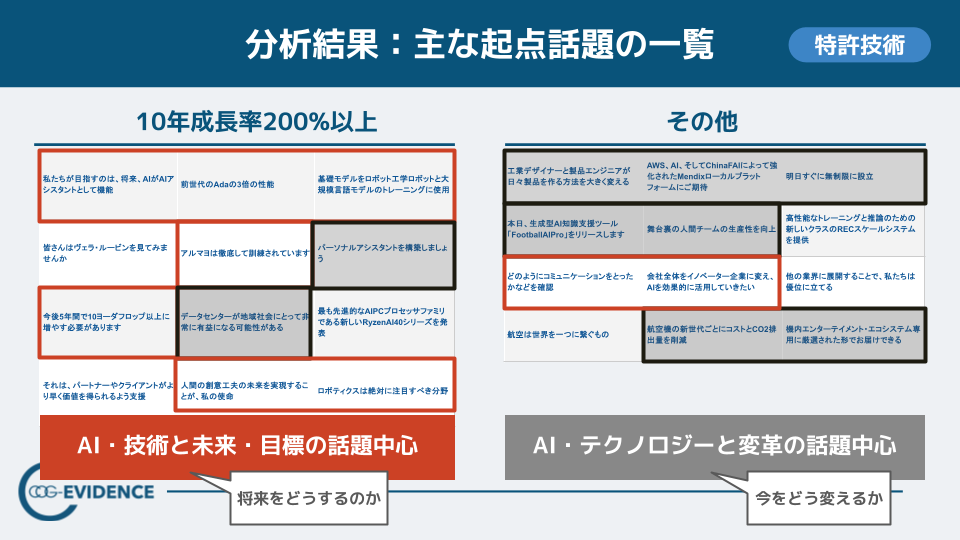 コグニティは、世界最大級のテクノロジー見本市「CES」における企業トップのキーノートスピーチを対象に、企業価値の10年成長率との関係性を分析しました。