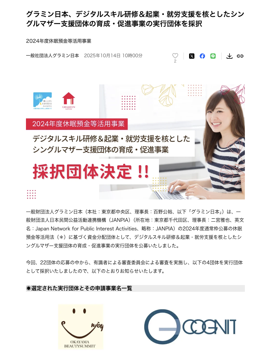 グラミン日本の休眠預金事業にて実行団体として採択 — 思考のバイアスを超え、より良い社会へ