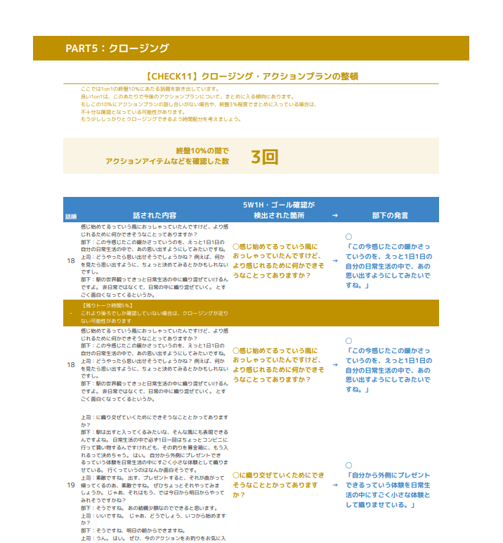 〇対話の最後に次のアクションを整理させ、行動につながるサポートをしている。