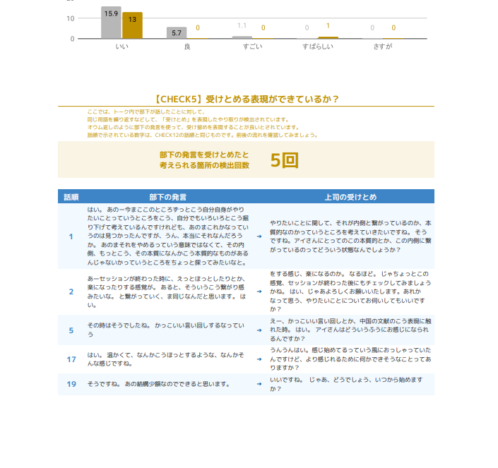 具体的な問いのパターンや共感の仕方を見える化できます。