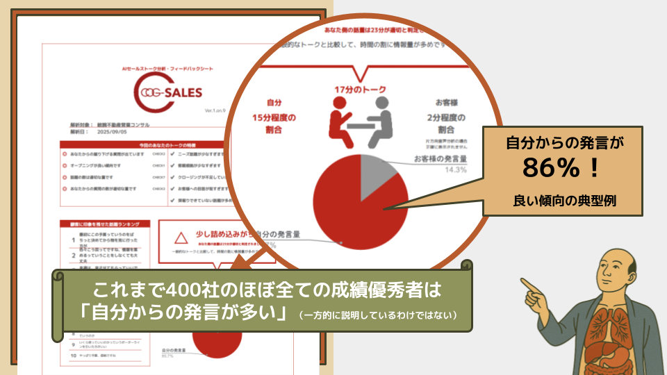 そこで、トークをAIで分析することで、感覚ではなく構造的な気づきを促すことができます。
