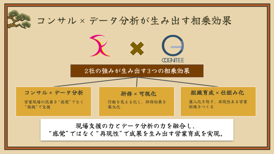この仕組みにより、誰もが成果を出せる再現性のある営業組織づくりを可能にします。