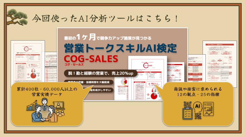 達人・内山さんのトーク分析に使用したAI分析ツール「COG-SALES」では、