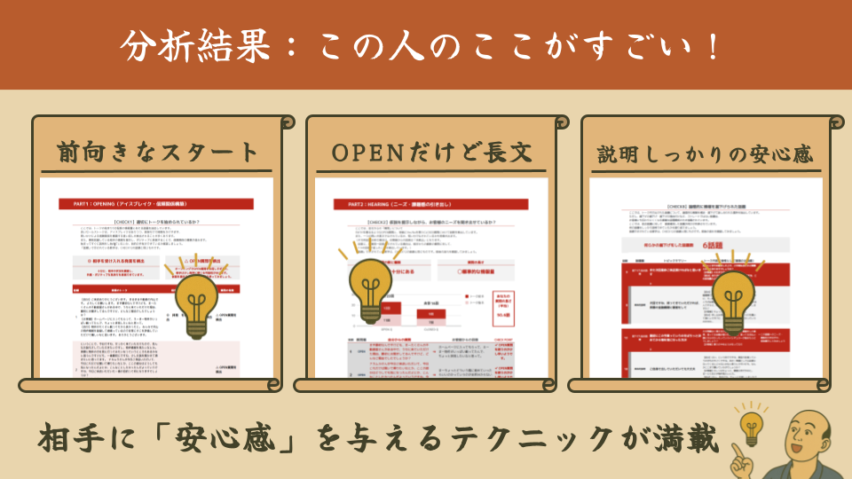COG-SALESで分析した内容は、すべてレポート化され、後から客観的にトーク結果を振り返ることができます。