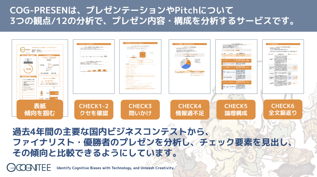 「COG-PRESEN」は、参加者の学習効果を高める支援として、ビジネスコンテストやアクセラレーター運営にも活用されており、今後も自治体・企業・大学等のプログラムに向けて提供を拡大してまいります。